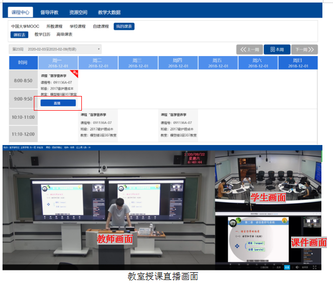 点击课程中心-我的课表,可根据教学周查看对应课程表,默认显示为本周课表;