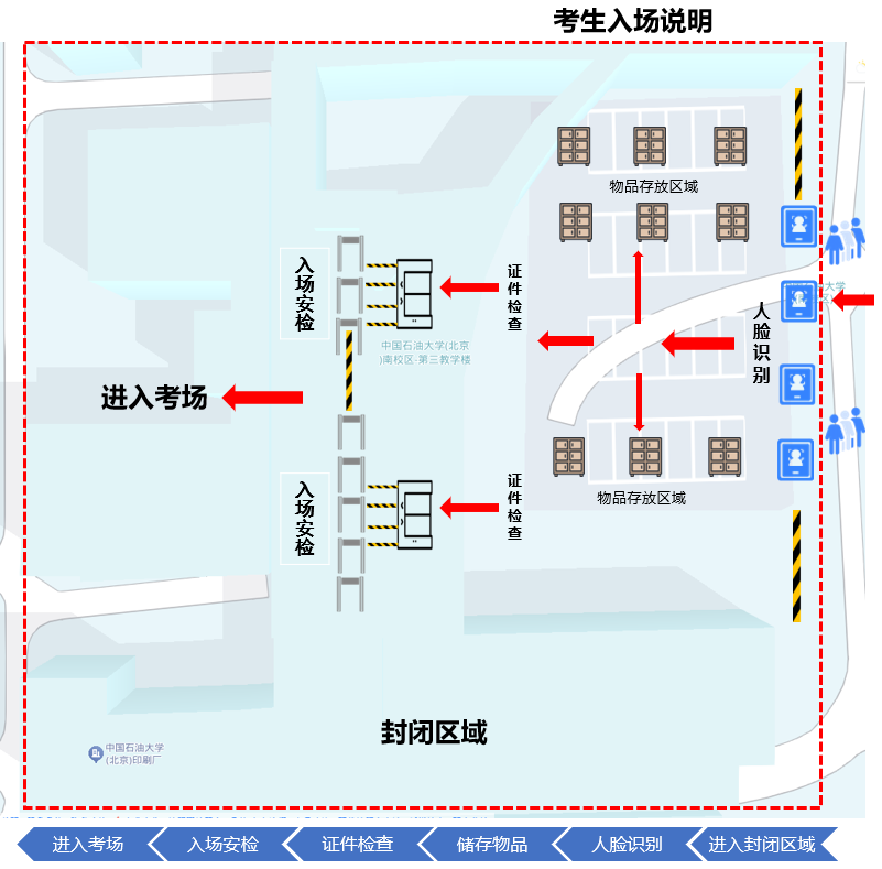 1.考生进入考场楼宇前,须依次通过“智能安检门”安全检查后方可进入。因携带违规物品等个人原因导致反复安检、影响入场时间的,后果由考生本人承担。